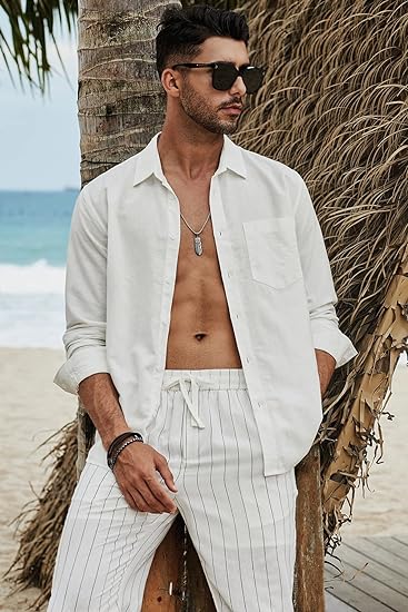 Material: Our fashion men’s button down long sleeve dress shirts are made with high-quality cotton linen fabric, ensuring breathability, lightweight feel, and softness. The fabric is also skin-friendly, providing comfort throughout the day. It can be worn as a casual shirt or a dress shirt, offering versatility. Check out our real video demonstrating each color option of this men’s linen shirt for your reference.