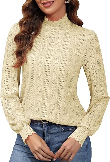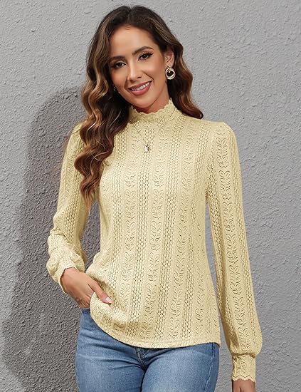 • 🌹【Suitable Occasions】long sleeve Lace tops, This long sleeve mock neck tops suitable for home, work, party, holiday etc. This fall tops are indispensable fashion item in a woman’s wardrobe.