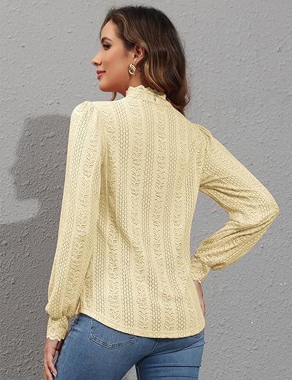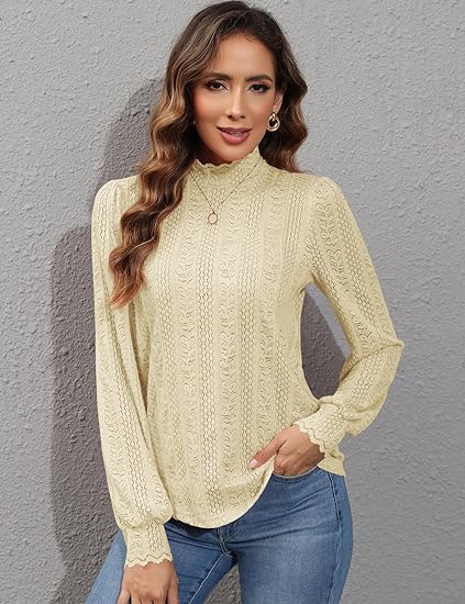 • 🌹【Features】Slightly Sheer lace disign, chic sleeve cuffs, littie puff long sleeve turtle neck shirts, casual and fashion style, Fully show your charming charm.