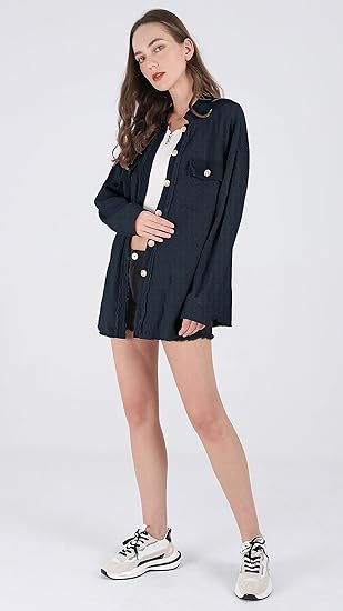 This oversized waffle shacket can perfectly match with various tops and bottoms for a leisure and street style, such as your t shirt, skirt, overalls, dress, jeans, leggings, sneakers, etc