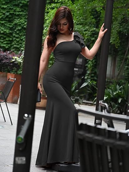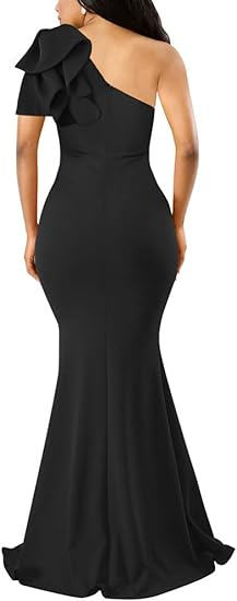 • Fashion design: One shoulder has a lotus leaf design, which can perfectly block the thick arm. The low-cut and ruffled design can make you more sexy and charming. There is a split design on the thighs, which can show your slender legs. The skirt is exactly the length of the floor, showing the elegant and dignified temperament of the dress.