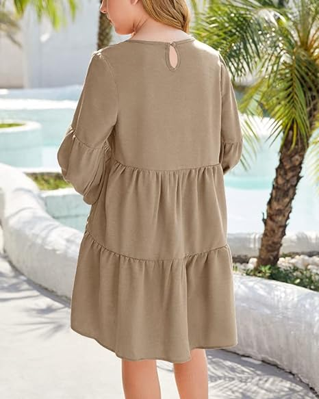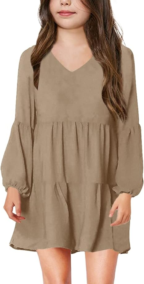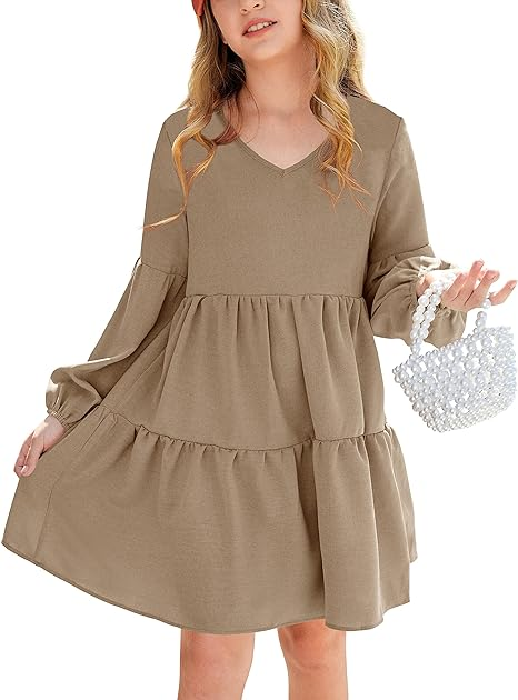 - Features: Cute v neck, lantern long sleeve, solid color, above the knee length, tiered dress, can be easily dress up and dress down